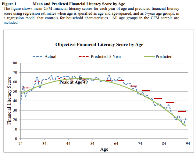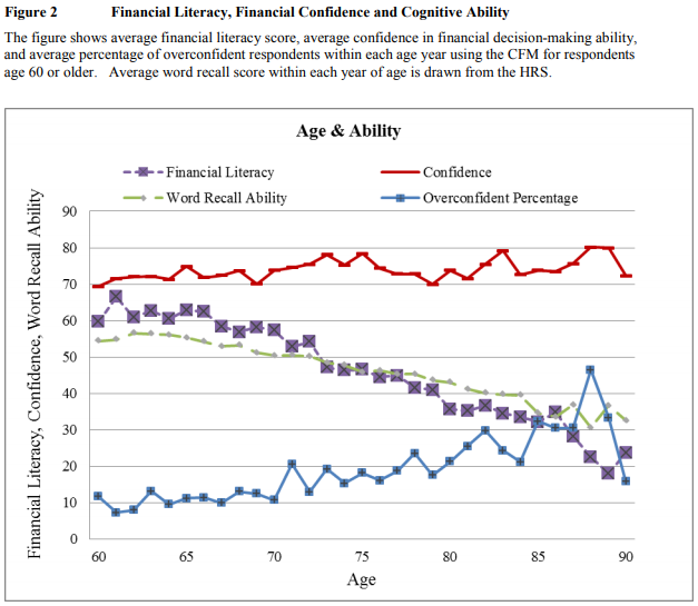 Yet, despite this obvious decline in financial literacy, the confidence associated with financial decision making does not decline.