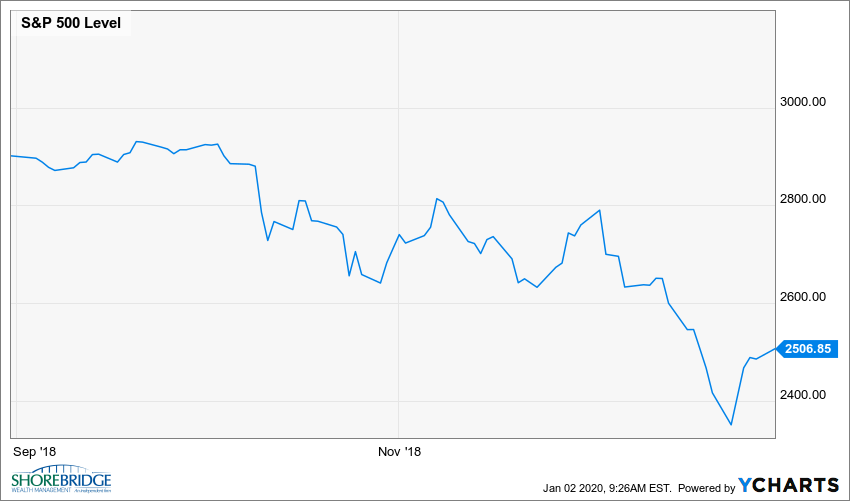The graphic above shows the last quarter of 2018 - a roughly 14% decline in a relatively short period of time. The peak to trough decline was closer to 20%. There were a litany of scary headlines about President Trump lashing out at the Federal Reserve, the slowing of corporate profits, how the trade war was impacting global growth and a partial government shutdown thanks to squabbling over border wall funding.