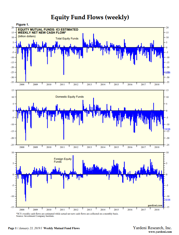 One of my favorite quotes about the market is, “The market has a way of disappointing the greatest number of people.” I do not know who said it, but it seems to ring true on a regular basis. In fact, you can see in the charts below from Yardeni research that people were selling out in droves toward the end of 2018.
