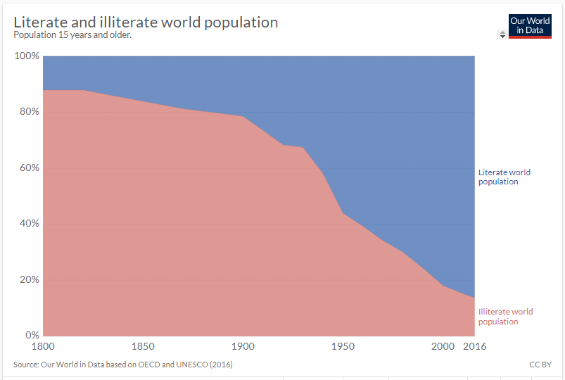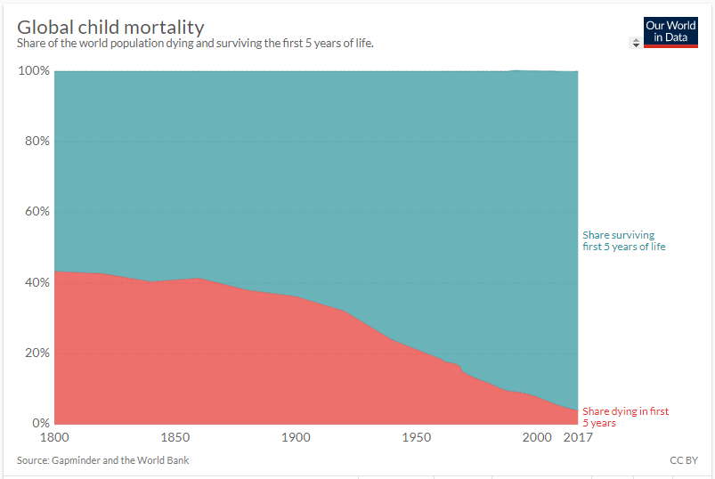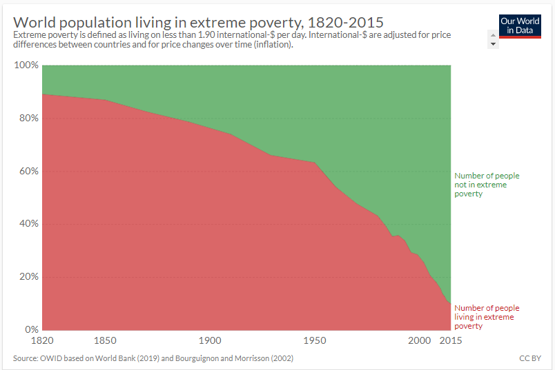 I wanted to draw your attention to a few graphs, all of which come from OurWorldInData.org via this article, “The short history of global living conditions and why it matters that we know it” by Max Roser. I have a simple question for you at the end.